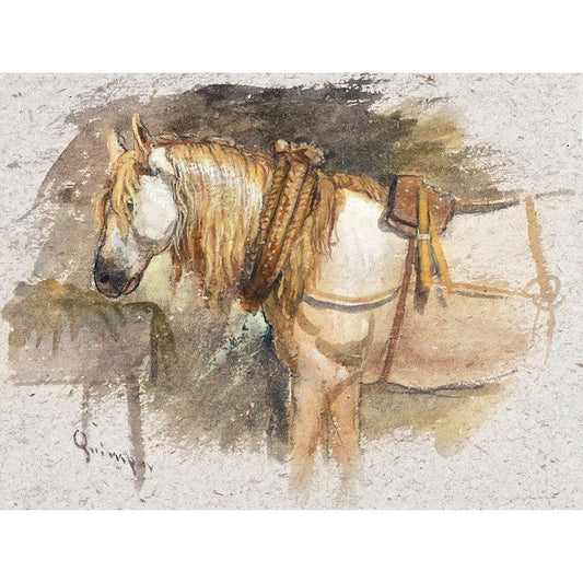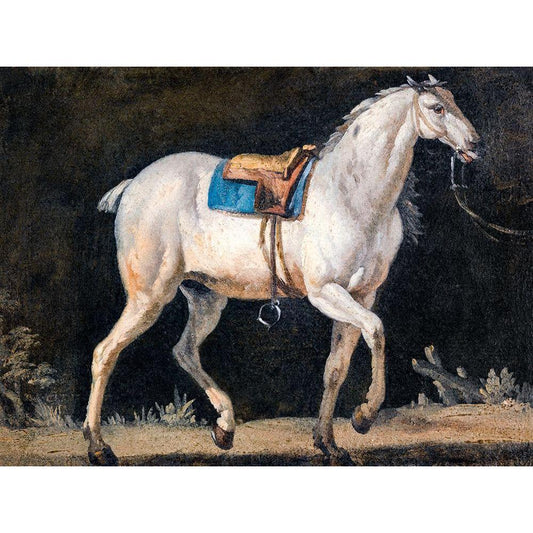 Saddled Gray Horse Gold Ornate Wood Framed Art Print with Double Matting by Agasse, Jacques-Laurent
