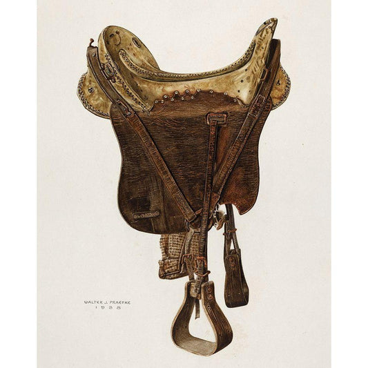McLellan Saddle 1938 Gold Ornate Wood Framed Art Print with Double Matting by Praefke, Walter