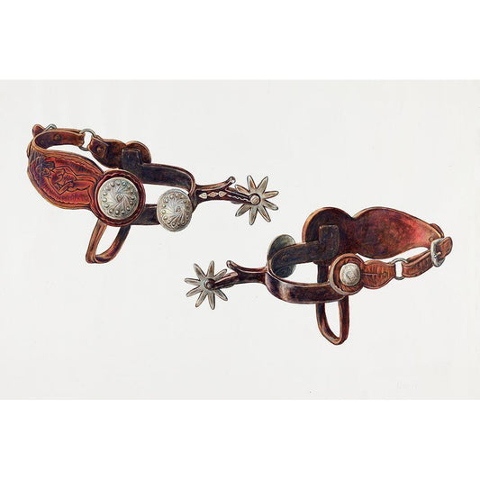 Silver Dollar Spurs 1938 Gold Ornate Wood Framed Art Print with Double Matting by Smith, Cecil
