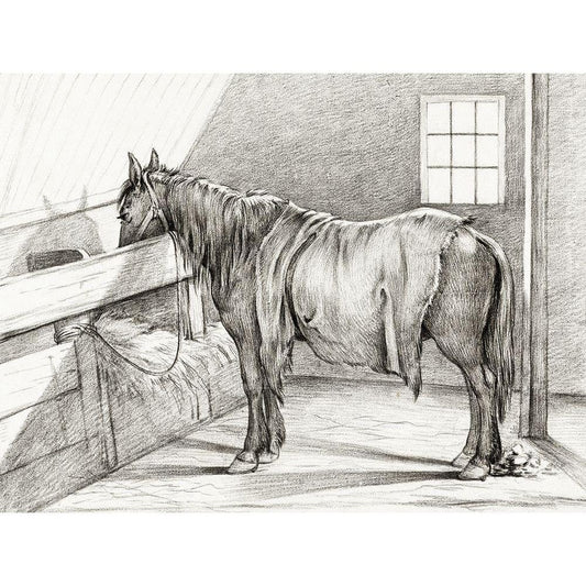 Standing Horse in a Stable Gold Ornate Wood Framed Art Print with Double Matting by Bernard, Jean