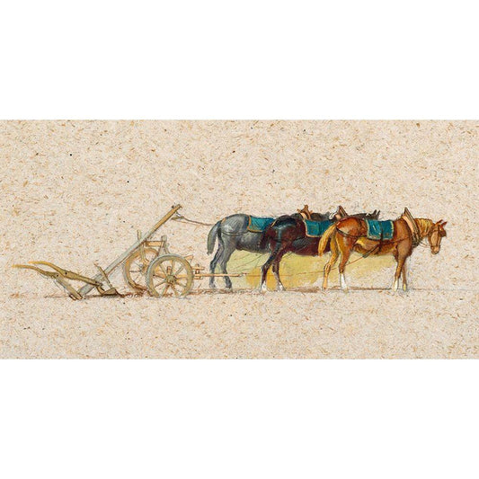 Study of Three Horses with a Plow Gold Ornate Wood Framed Art Print with Double Matting by Colman, Samuel