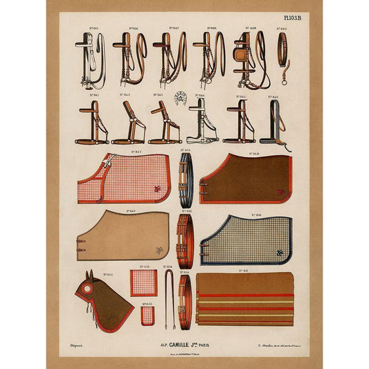 Horses with Antique Riding Equipment III Gold Ornate Wood Framed Art Print with Double Matting by Vintage Drawings