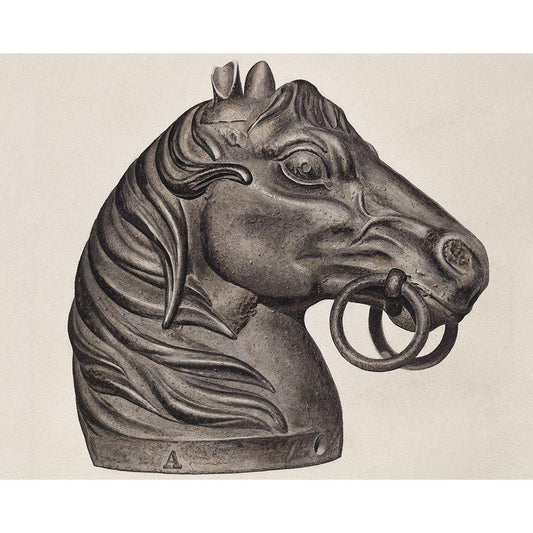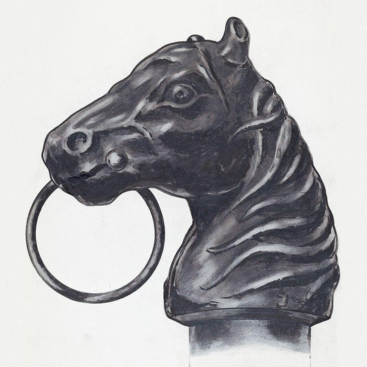 Horse Head Hitching Post 1936 Gold Ornate Wood Framed Art Print with Double Matting by Hastings, C.H.