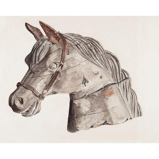Carousel Horses Head 1931 Gold Ornate Wood Framed Art Print with Double Matting by Barnett, Gerard