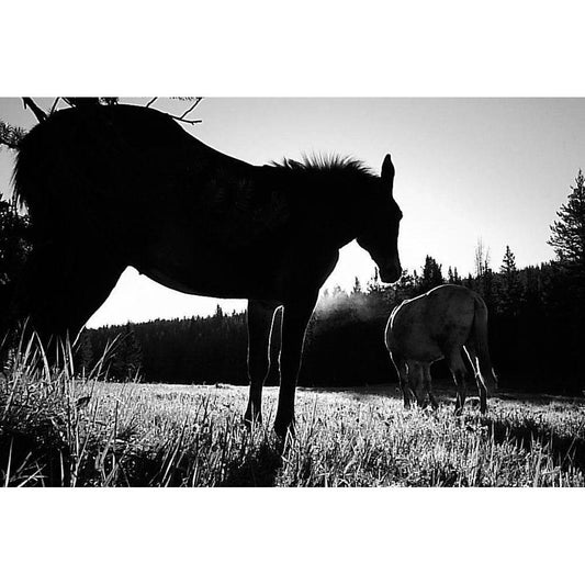 Foal and mare Gold Ornate Wood Framed Art Print with Double Matting by The Yellowstone Collection