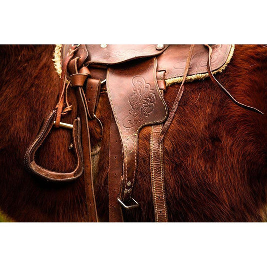 Saddled Gold Ornate Wood Framed Art Print with Double Matting by The Yellowstone Collection