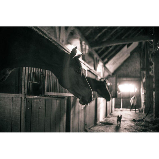 Stable Gossip Gold Ornate Wood Framed Art Print with Double Matting by The Yellowstone Collection
