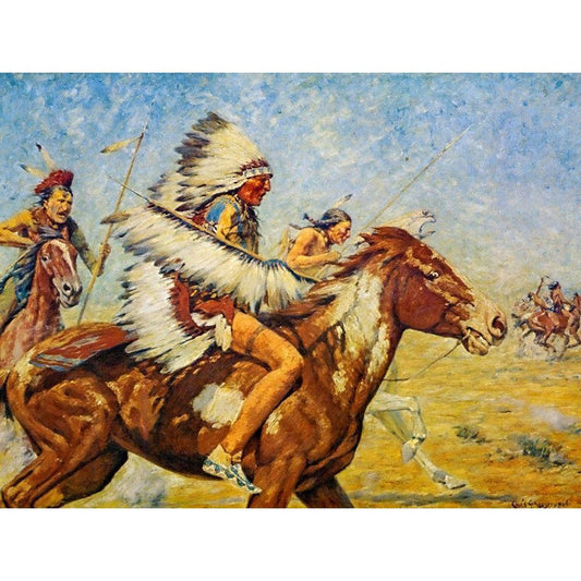 Doomed - Indian Hunting Buffalo Gold Ornate Wood Framed Art Print with Double Matting by Shreyvogel, Charles