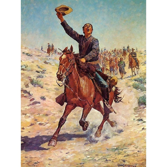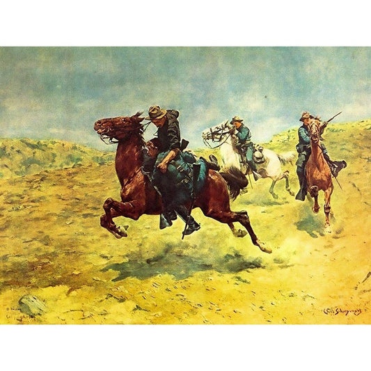 Going for Reinforcements Gold Ornate Wood Framed Art Print with Double Matting by Shreyvogel, Charles