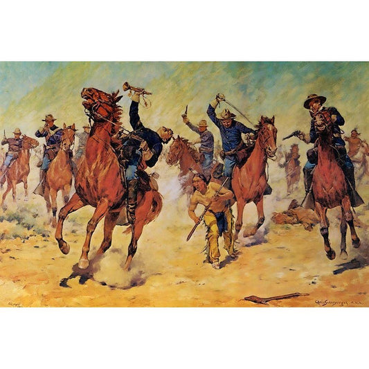 The Skirmish Line Gold Ornate Wood Framed Art Print with Double Matting by Shreyvogel, Charles