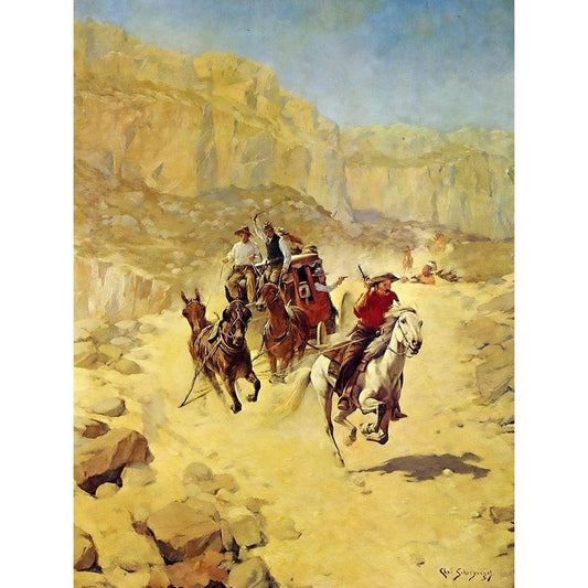 Going into Action Gold Ornate Wood Framed Art Print with Double Matting by Shreyvogel, Charles