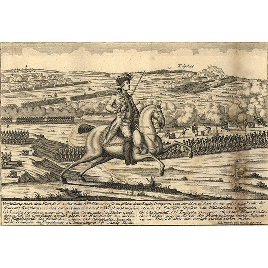 English General Howes Troops with German General Knypehausen 1777 Gold Ornate Wood Framed Art Print with Double Matting by Vintage Maps