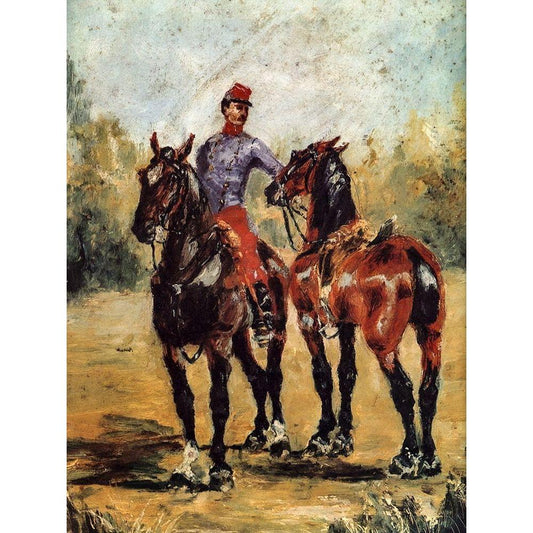 Groom with Two Horses Gold Ornate Wood Framed Art Print with Double Matting by Toulouse-Lautrec, Henri de