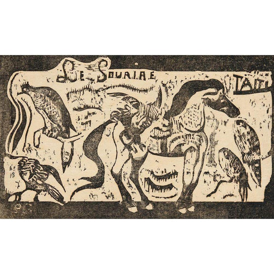 A Horse and Birds, headpiece for Le sourire Gold Ornate Wood Framed Art Print with Double Matting by Gauguin, Paul