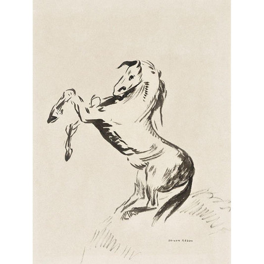 Jumping Horse on Clouds (Pegasus) Gold Ornate Wood Framed Art Print with Double Matting by Redon, Odilon