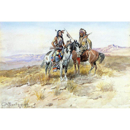 The Scout, Friends or Foes Gold Ornate Wood Framed Art Print with Double Matting by Remington, Frederic