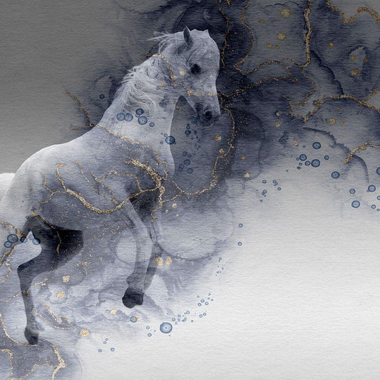 White Horse Gold Ornate Wood Framed Art Print with Double Matting by Wiley, Marta