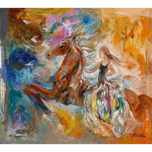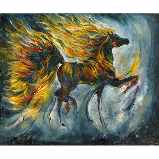 Horse On Fire Bright Colors Gold Ornate Wood Framed Art Print with Double Matting by Wiley, Marta