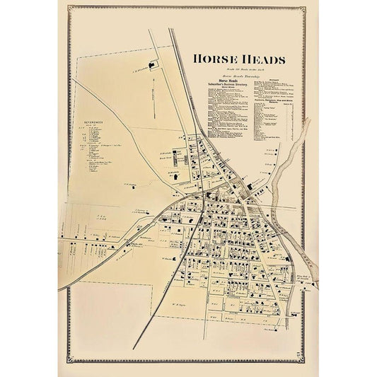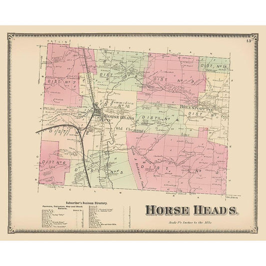Horse Heads New York Landowner - Beers 1869 Gold Ornate Wood Framed Art Print with Double Matting by Beers