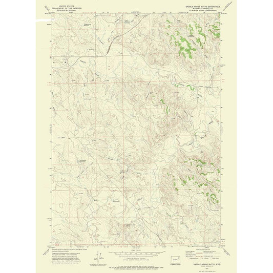 Saddle Horse Butte Wyoming Quad - USGS 1971 Gold Ornate Wood Framed Art Print with Double Matting by USGS