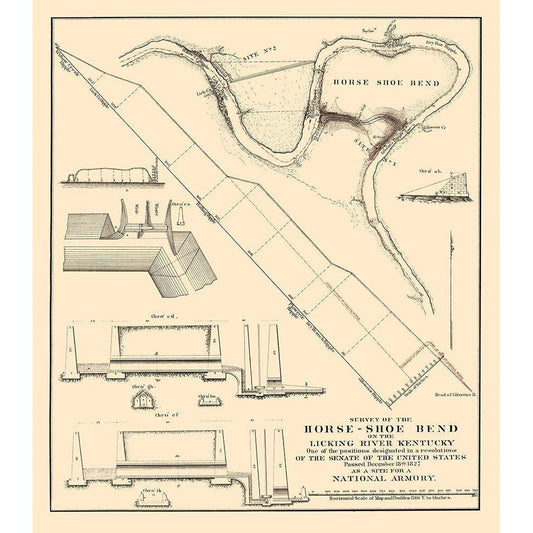 Horse Shoe Bend, Licking River Armory Kentucky Gold Ornate Wood Framed Art Print with Double Matting by Gales