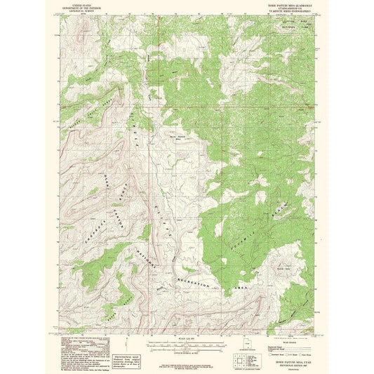 Horse Pasture Mesa Utah Quad - USGS 1987 Gold Ornate Wood Framed Art Print with Double Matting by USGS
