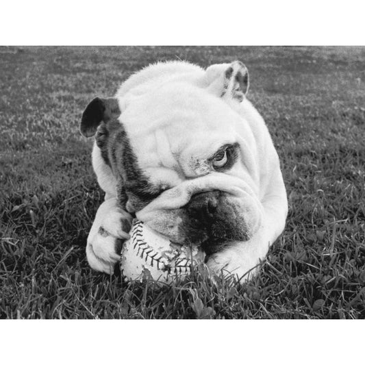 English Bulldog with Stonehenge Black Modern Wood Framed Art Print by Barruf