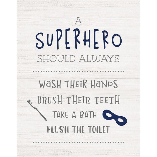 Superhero Bath Black Modern Wood Framed Art Print by Carpentieri, Natalie