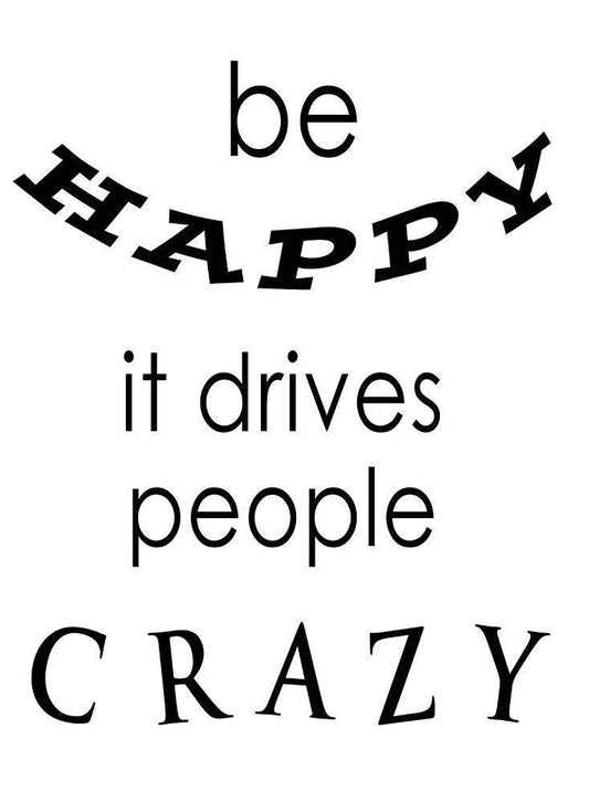 Be Happy White Modern Wood Framed Art Print with Double Matting by Anonymous