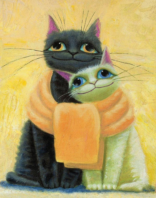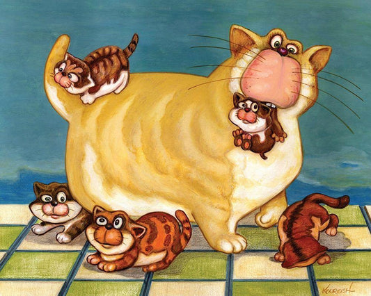Happy Tabby White Modern Wood Framed Art Print with Double Matting by Leov, K