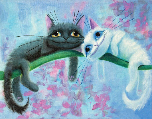 Catfight White Modern Wood Framed Art Print with Double Matting by Anonymous