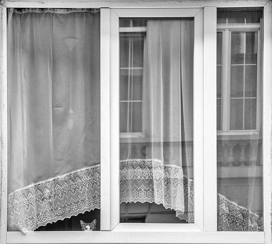 Kitten Window White Modern Wood Framed Art Print with Double Matting by Stoop, Susanne