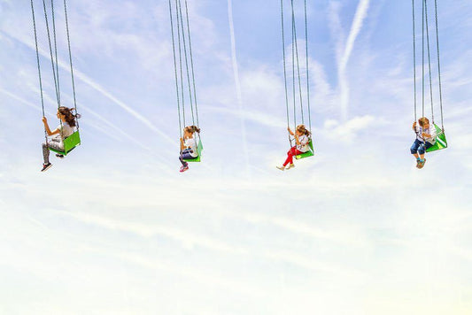 Heads In The Clouds! White Modern Wood Framed Art Print with Double Matting by Cinteza, Marius
