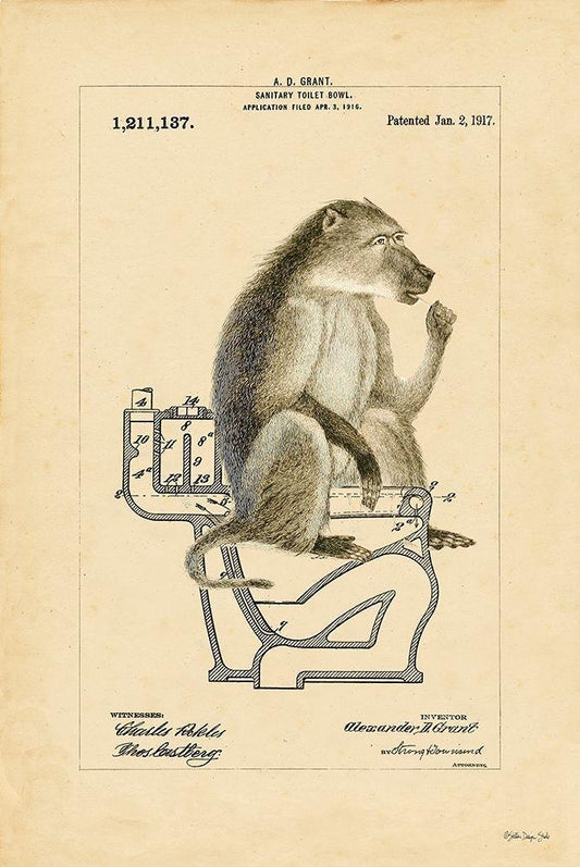Monkey in Bowl White Modern Wood Framed Art Print with Double Matting by Stellar Design Studio