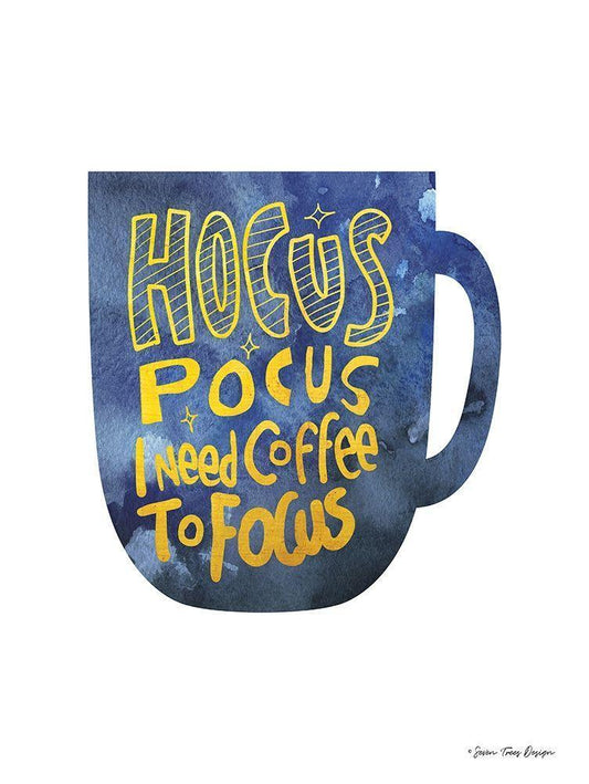 Hocus Pocus I Need Coffee to Focus White Modern Wood Framed Art Print with Double Matting by Seven Trees Design