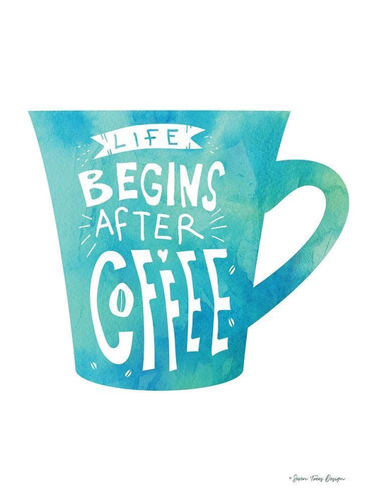 Life Begins After Coffee White Modern Wood Framed Art Print with Double Matting by Seven Trees Design
