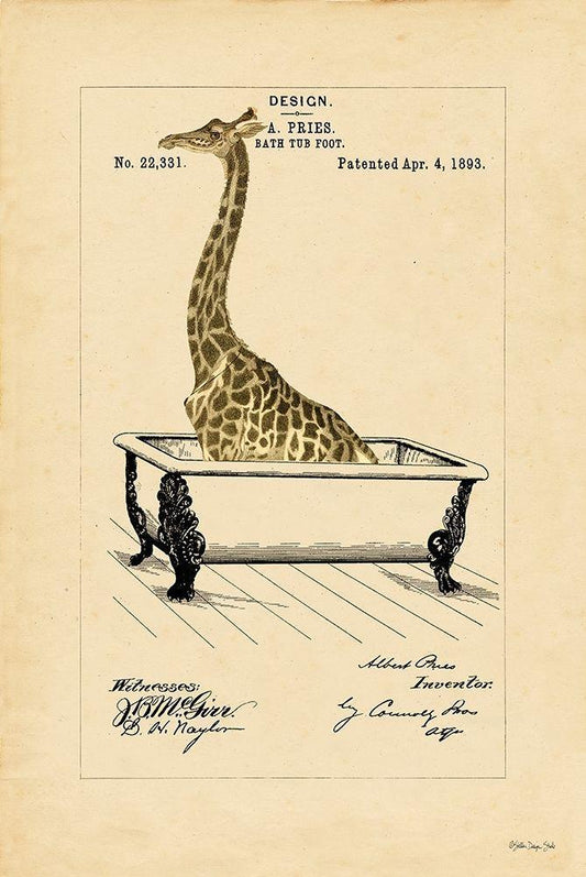 Giraffe in Tub White Modern Wood Framed Art Print with Double Matting by Stellar Design Studio