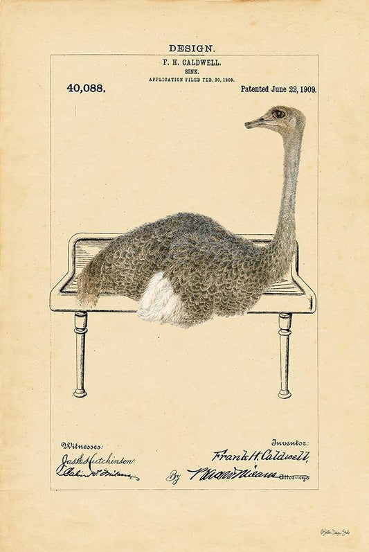 Ostrich in Sink White Modern Wood Framed Art Print with Double Matting by Stellar Design Studio