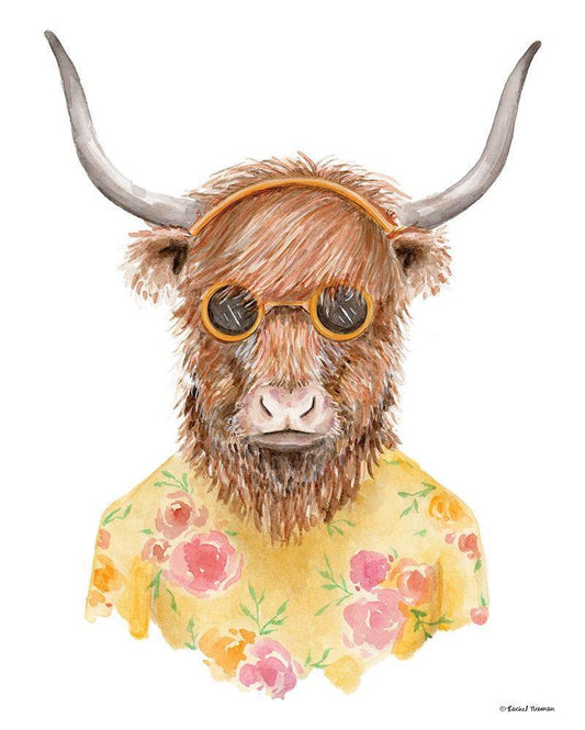 Yak in Yellow White Modern Wood Framed Art Print with Double Matting by Nieman, Rachel
