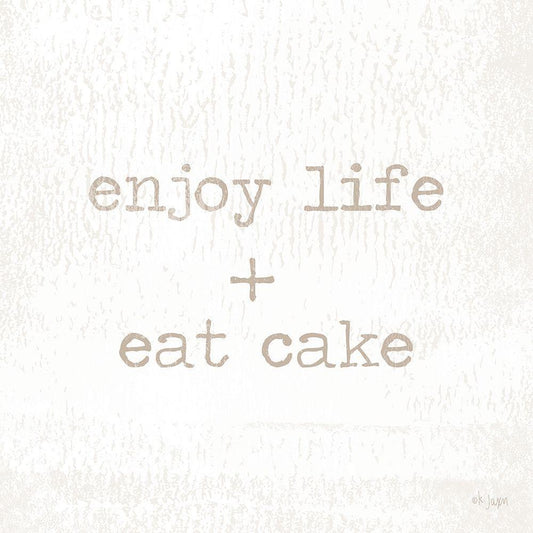 Enjoy Life + Eat Cake White Modern Wood Framed Art Print with Double Matting by Jaxn Blvd.