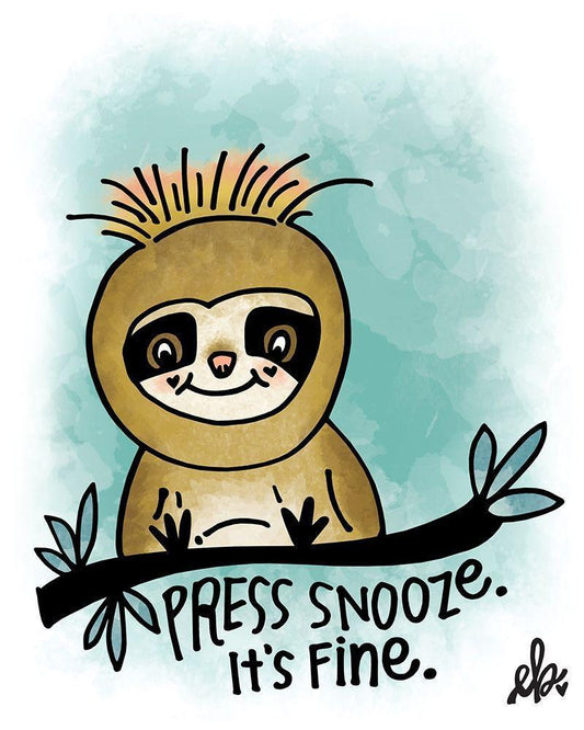 Press Snooze White Modern Wood Framed Art Print with Double Matting by Barrett, Erin