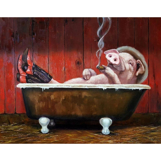 Hog Heaven Gold Ornate Wood Framed Art Print with Double Matting by Heffernan, Lucia