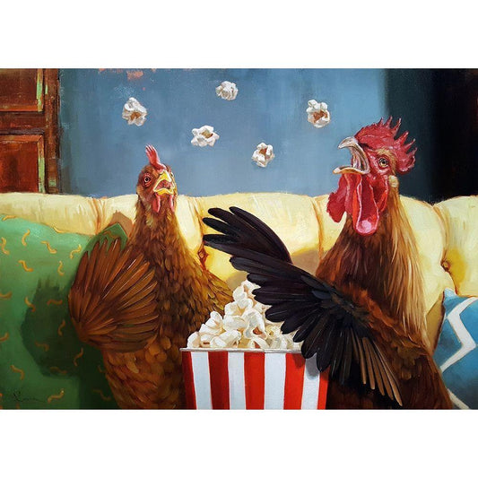 Popcorn Chickens Gold Ornate Wood Framed Art Print with Double Matting by Heffernan, Lucia