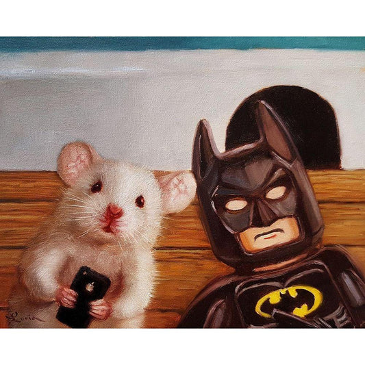 Selfie with Batman Gold Ornate Wood Framed Art Print with Double Matting by Heffernan, Lucia