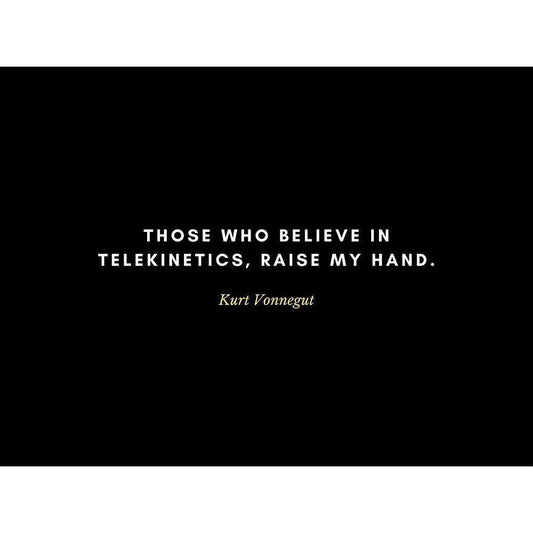 Kurt Vonnegut Quote: Telekinetics Black Modern Wood Framed Art Print by ArtsyQuotes