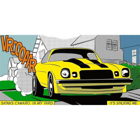 Satan s Camaro Black Modern Wood Framed Art Print by Strapelias - PR, Pierre