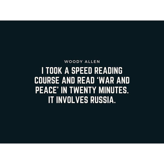 Woody Allen Quote: War and Peace Black Modern Wood Framed Art Print by ArtsyQuotes