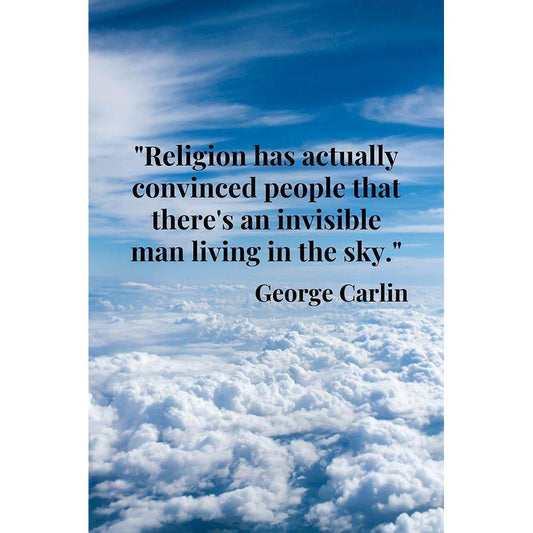 George Carlin Quote: Religion Black Modern Wood Framed Art Print by ArtsyQuotes