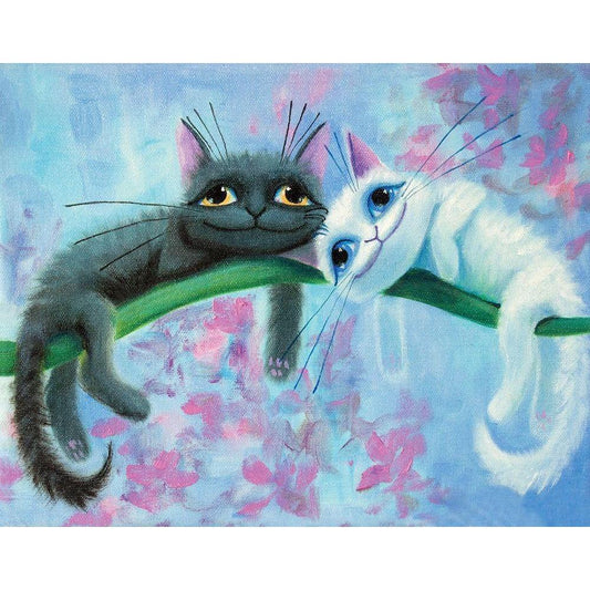 Catfight Black Modern Wood Framed Art Print by Anonymous