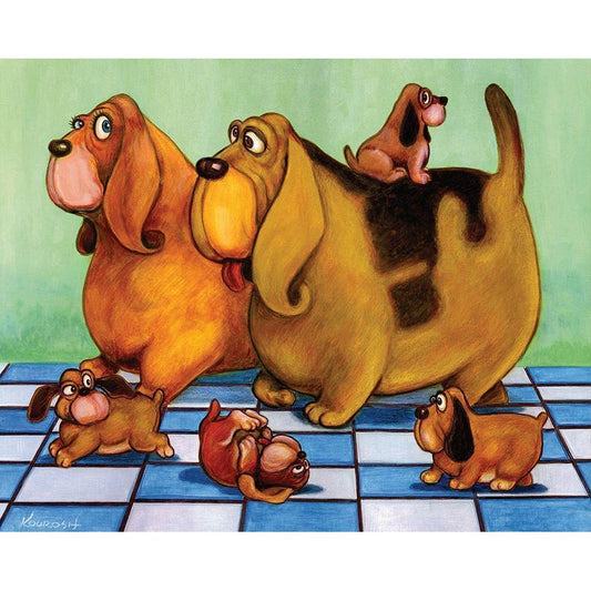 Hounddog Family Picnic Black Modern Wood Framed Art Print by Kourosh